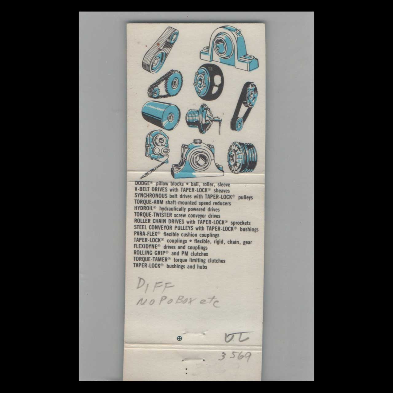 Dodge Transmissions Matchbook Cover Unlaub Dallas TX