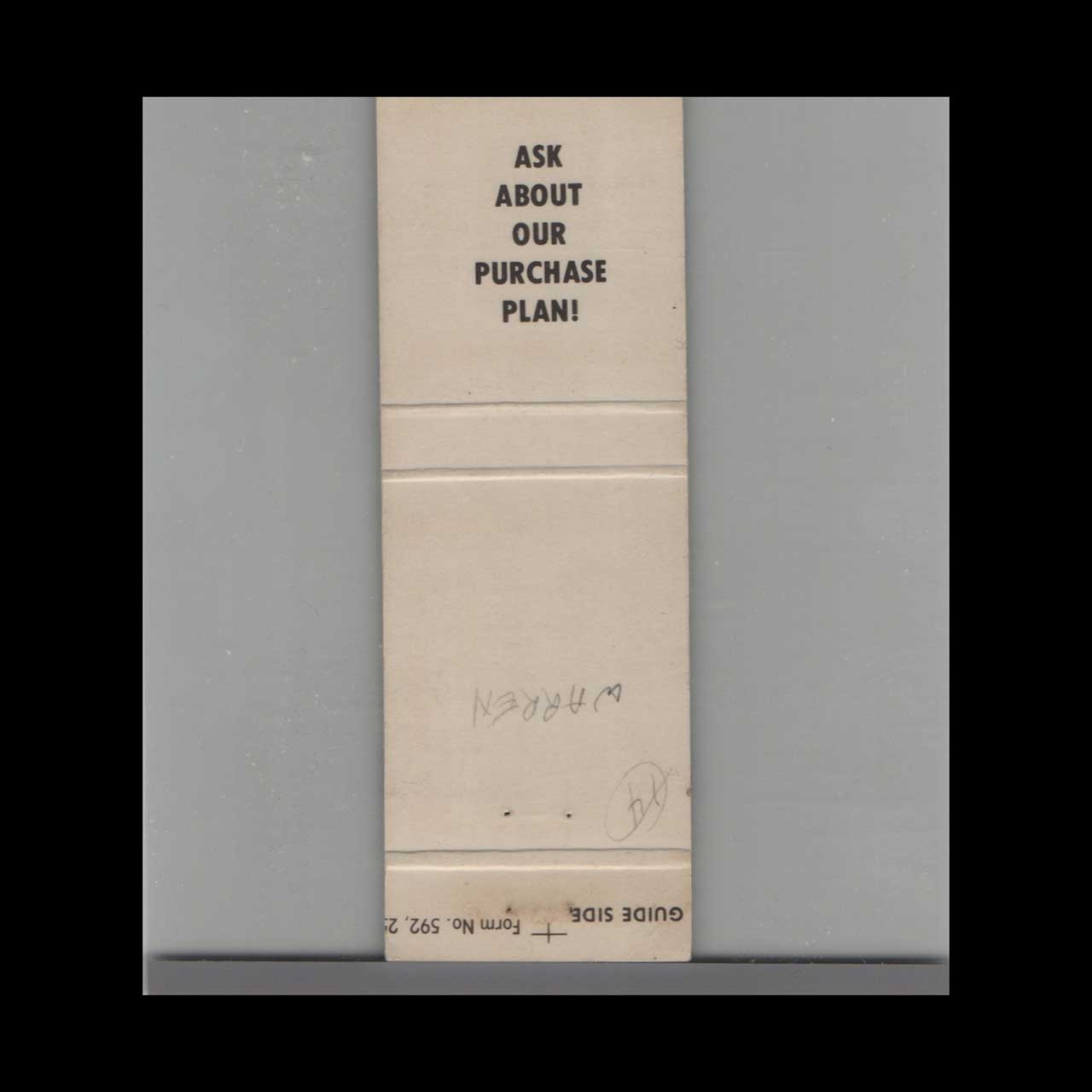 Dogwood Lake Campground in Warrenton, MO, offers a serene outdoor retreat surrounded by natural beauty. This vintage matchbook is a nostalgic piece of Americana for collectors.