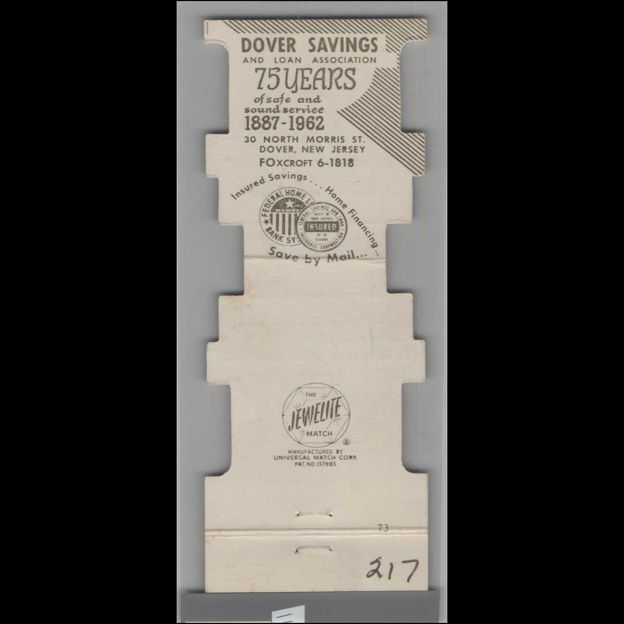 Dover Savings 75th Anniversary Matchbook Cover, Dover NJ