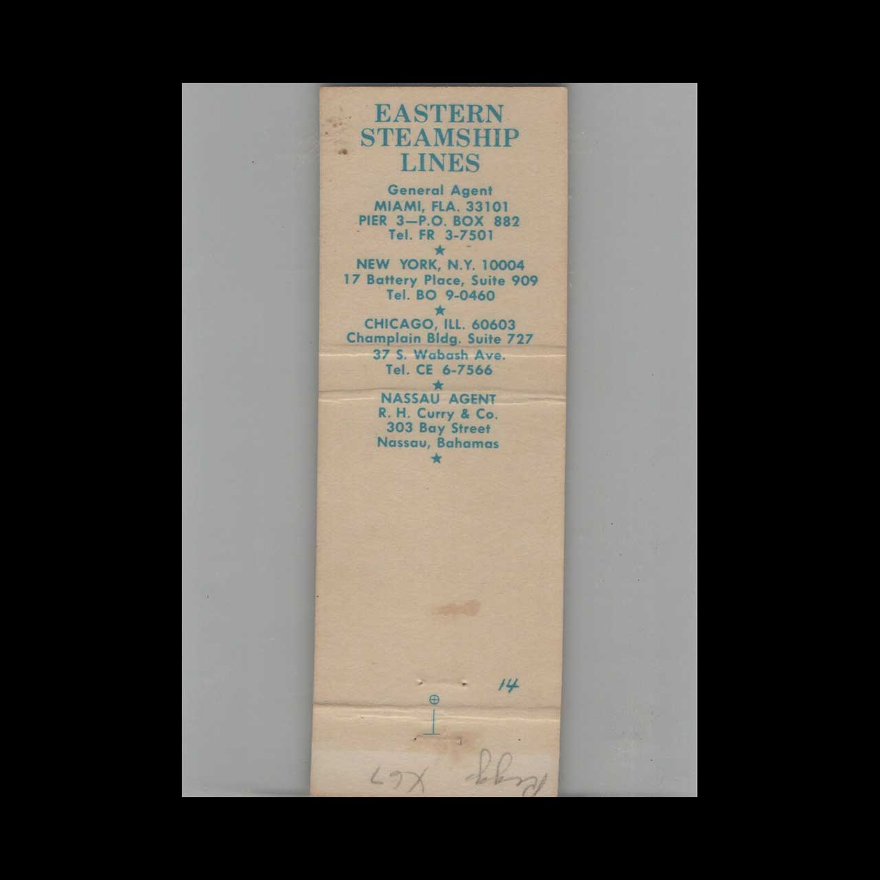 Eastern Steamship Lines Matchbook Cover Miami FL