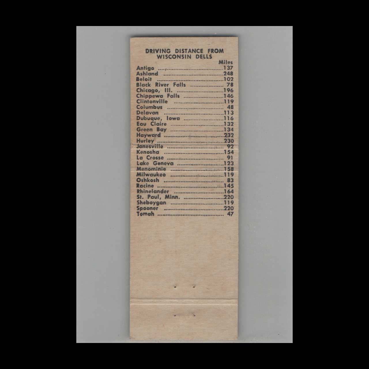 Edler’s Rustic Pines Lodge in Wisconsin Dells offers a charming retreat amid natural beauty. A nostalgic piece of Americana for vintage matchbook collectors.