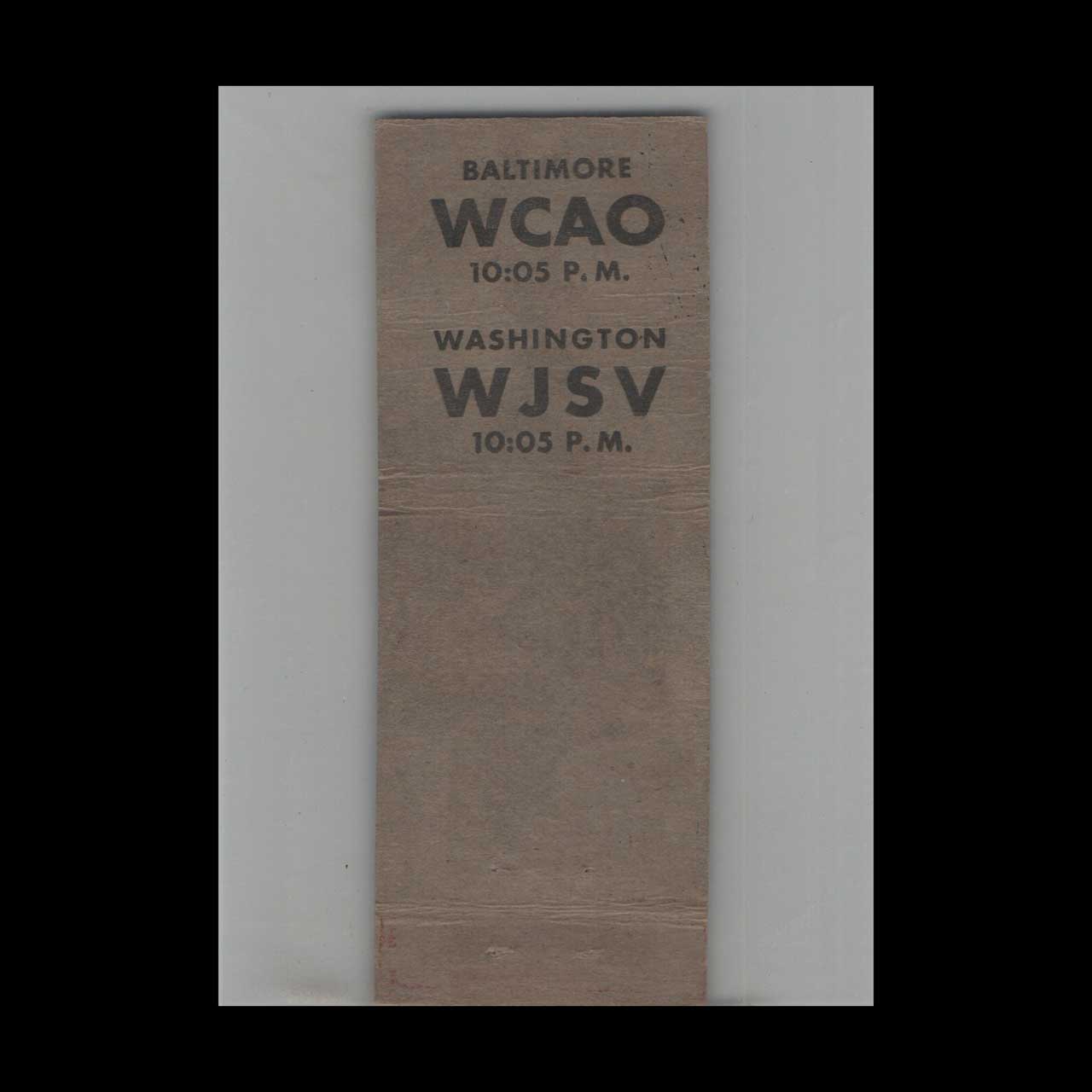 Edwin C. Hill Radio Station Matchbook Cover, Columbia Network