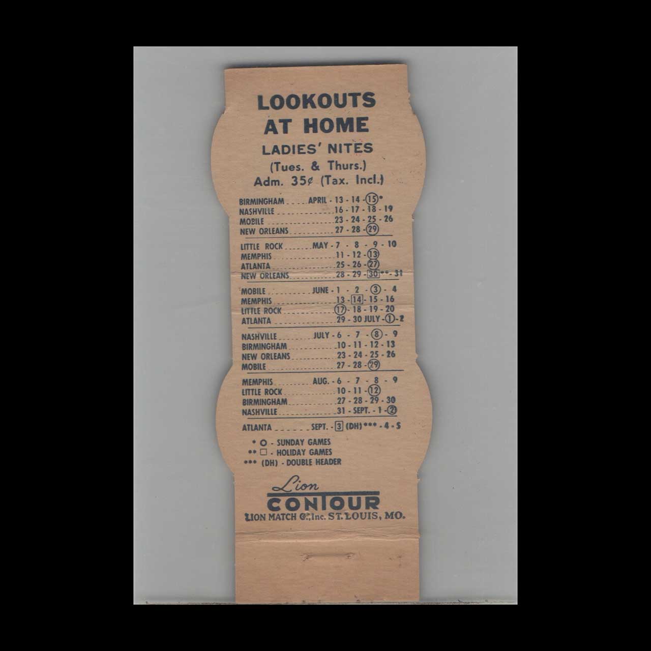 Engel Stadium Chattanooga Lookouts 1950s Baseball Schedule