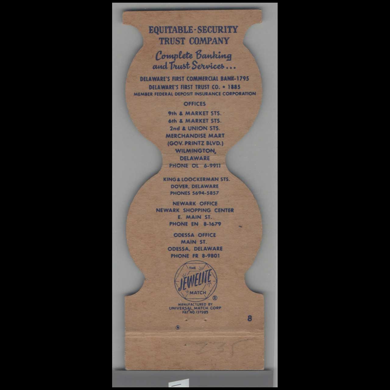 Equitable Security & Trust Co. Dover DE Matchbook Cover