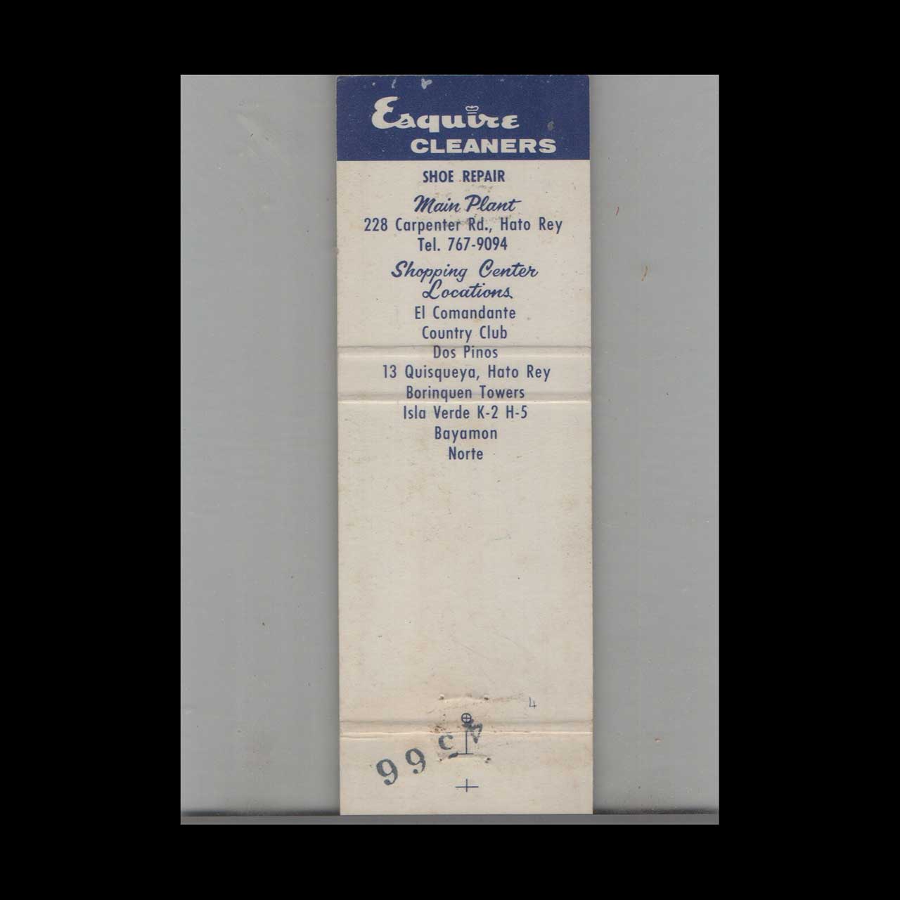 Esquire Cleaners Matchbook Cover Hato Rey Puerto Rico