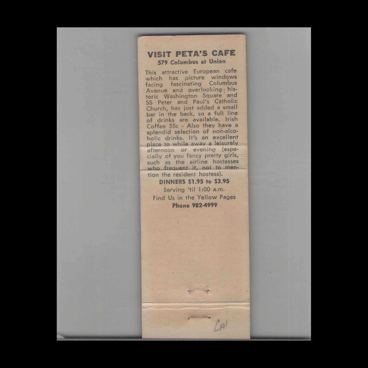 <h3>About this Vintage Matchbook</h3> <p>European Restaurant served authentic Irish Coffee for 55 cents, blending Old World charm with American dining. A nostalgic piece of Americana for collectors.</p> <p><strong>Brand:</strong> Matchbook Cover European Restaurant Irish Coffee 55 Cents</p> <p><strong>Category:</strong> Vintage Americana Memorabilia</p>