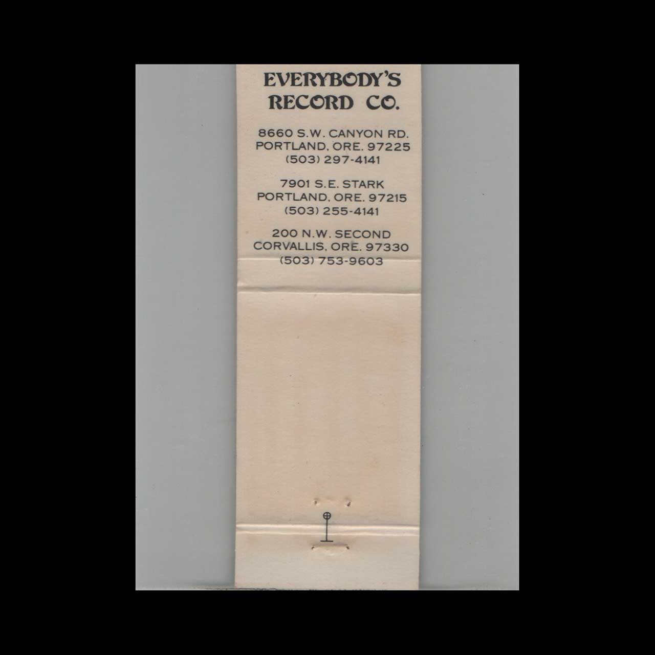 Everybody’s Record Co Matchbook Cover Portland OR