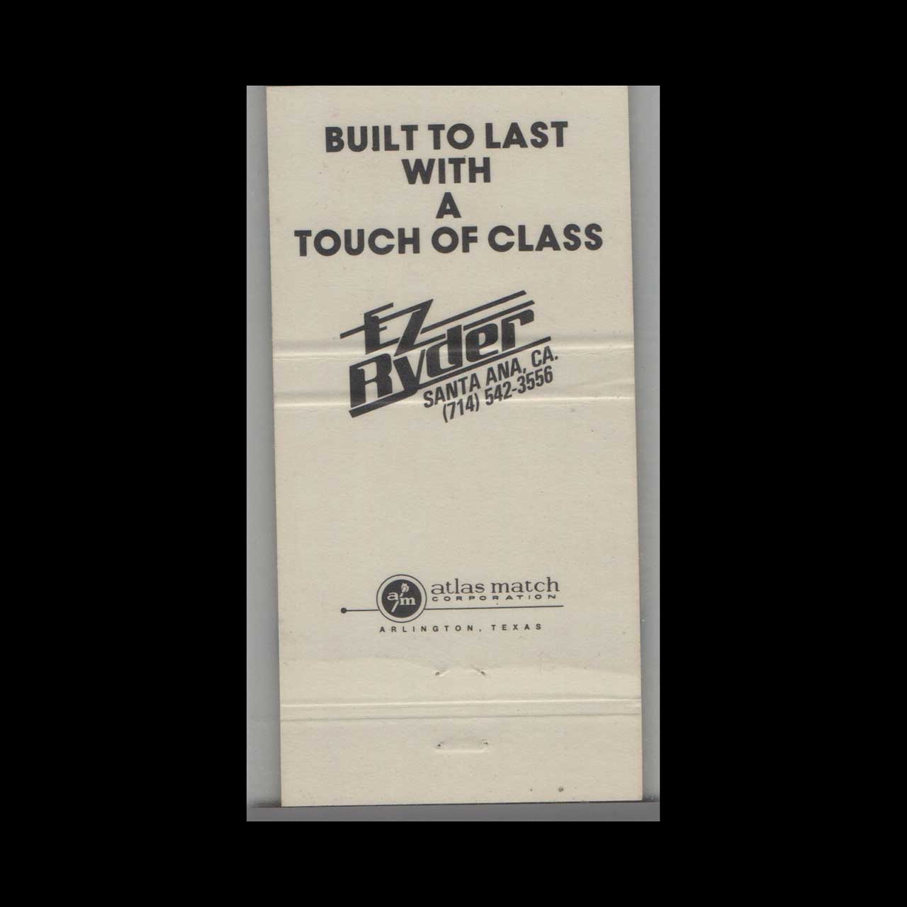 Ez Ryder offered quality recreational vehicles in Santa Ana, CA, catering to adventure seekers and travelers. This matchbook is a classic ephemera relic, cherished by Americana collectors.