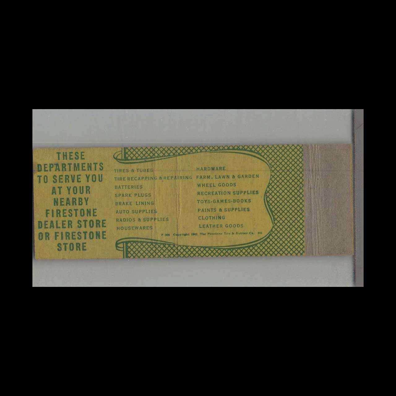 Firestone Tires in Excelsior, MN, a trusted name in automotive care and tire service. A nostalgic piece of Americana for vintage matchbook collectors.