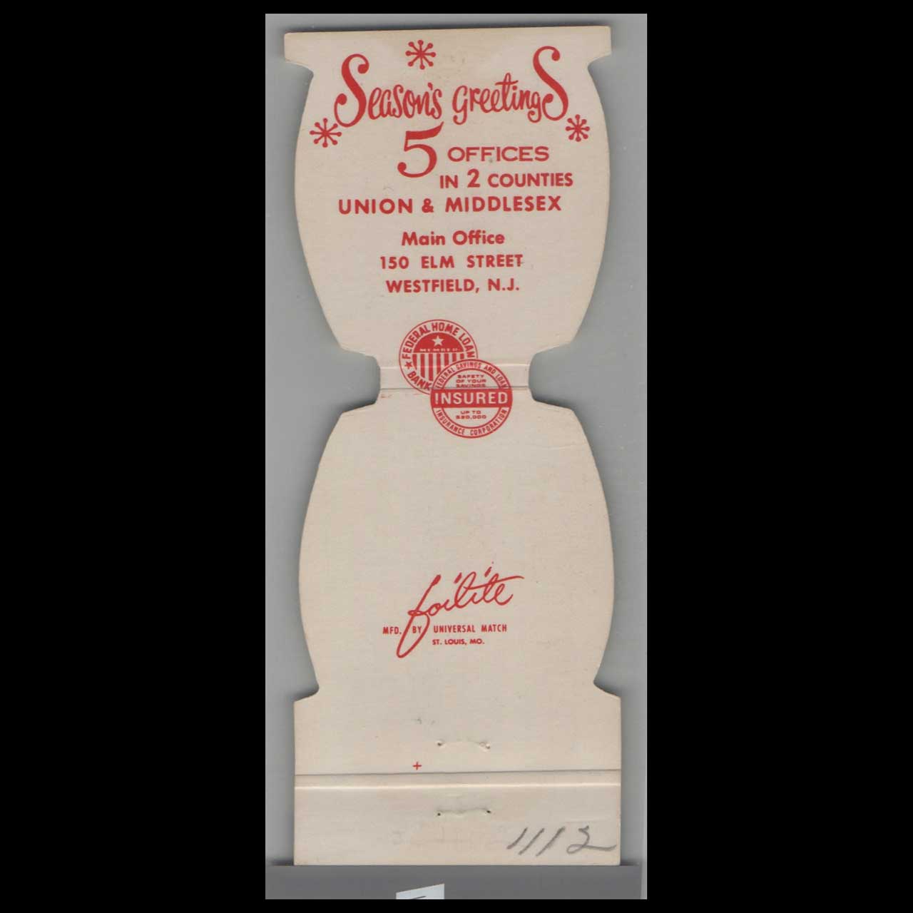 First Federal Savings Matchbook Cover Westfield NJ Holiday