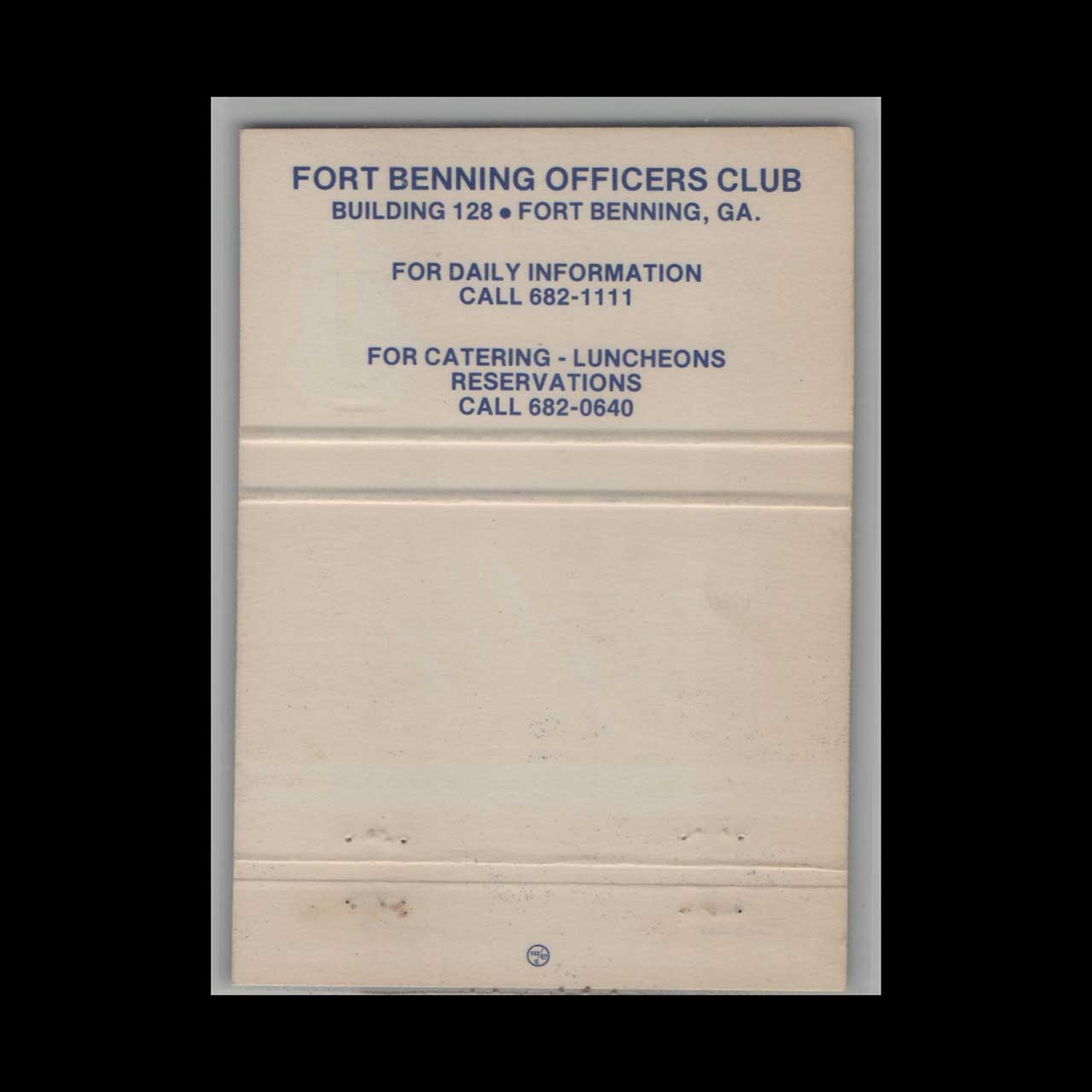 Fort Benning Officers Club Matchbook Cover Columbus GA