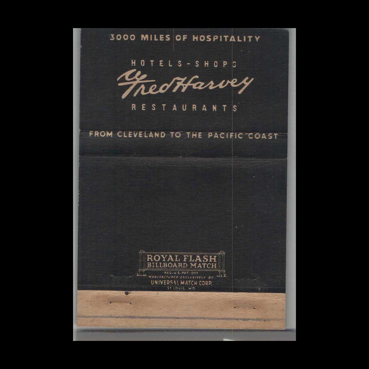 Fred Harvey Restaurants Matchbook Cover Cleveland to West