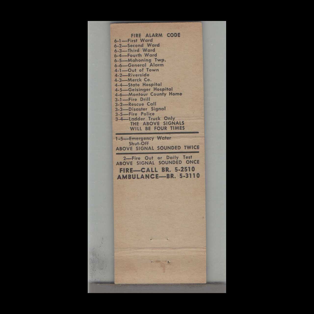 Friendship Fire Co. No. 1 Danville PA Matchbook Cover