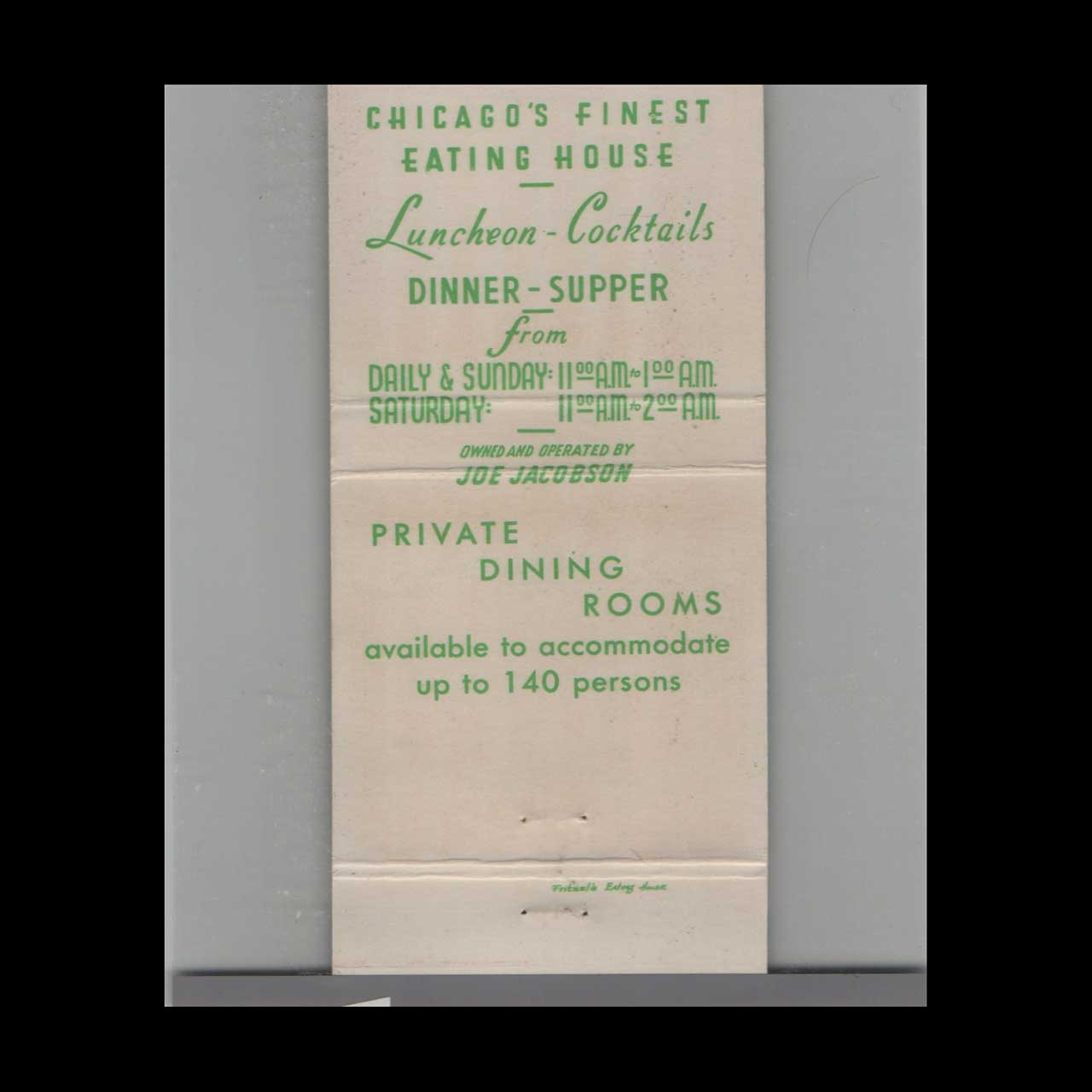 Fritzel’s Restaurant in Chicago, IL, was a beloved dining spot known for its authentic Midwestern cuisine and lively atmosphere. This vintage matchbook cover is a classic ephemera relic cherished by Americana collectors.
