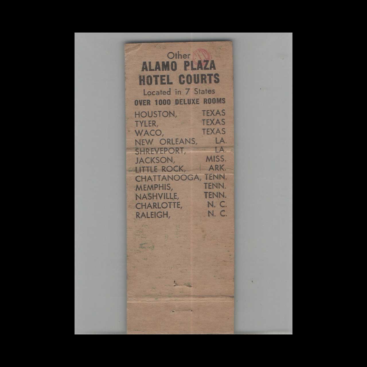 Full Length Matchbook Cover Alamo Plaza Hotel Courts Dallas TX