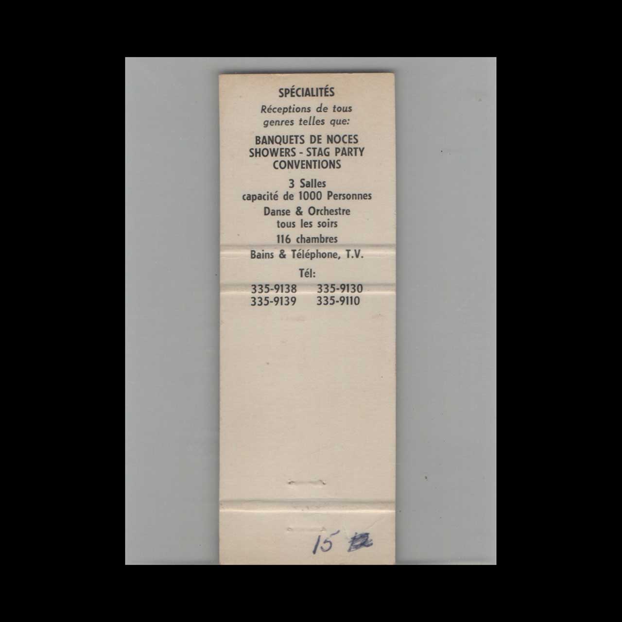 Vintage matchbook cover advertising Full Length Balmoral Hotel Motel Thetford Mines QC.