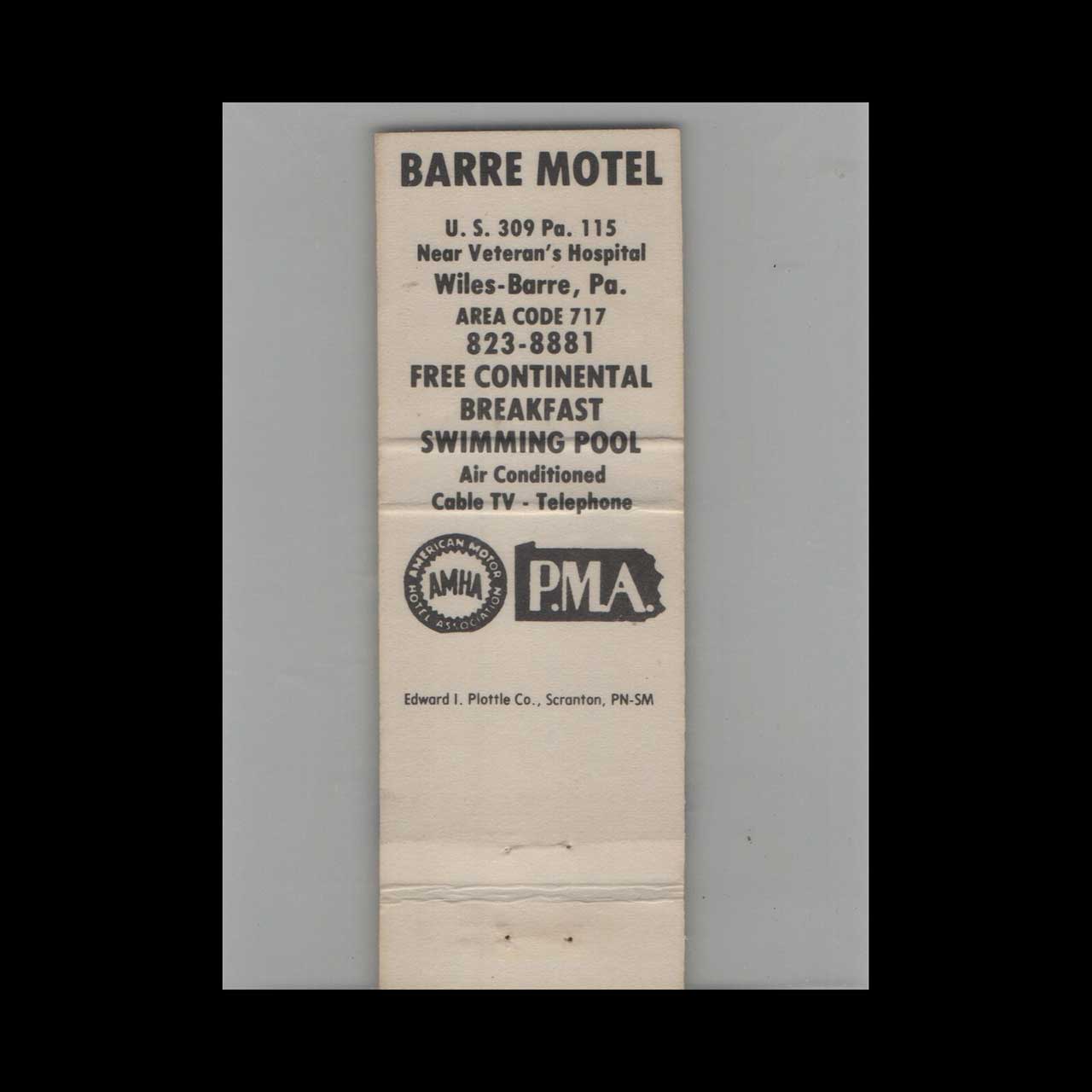 Full Length Matchbook Cover Barre Motel Wilkes Barre PA #2