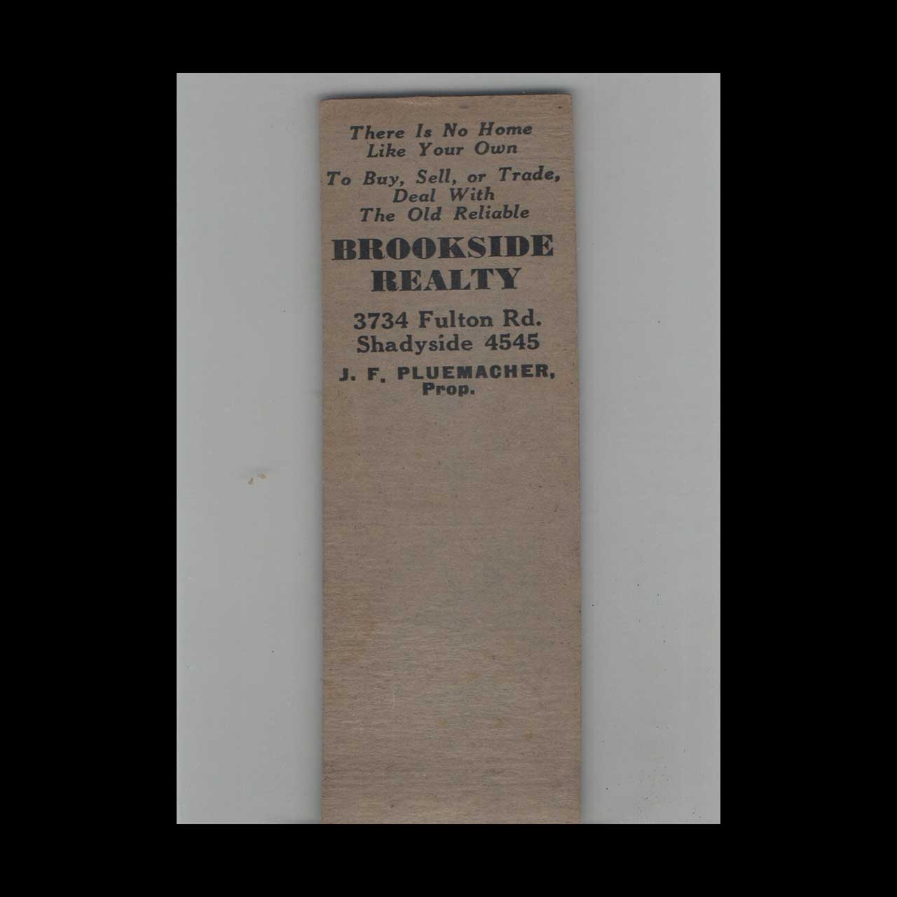 Vintage matchbook cover advertising Full Length Buy A Home Brookside Realty.