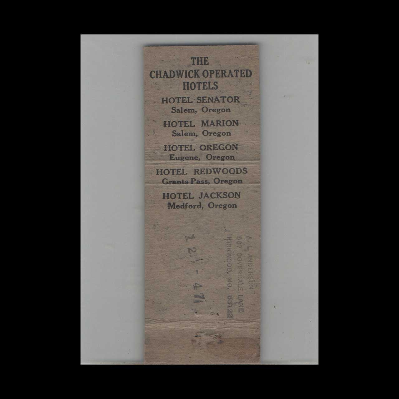Full Length Matchbook Cover Chadwick Operated Hotels Grants Pass OR
