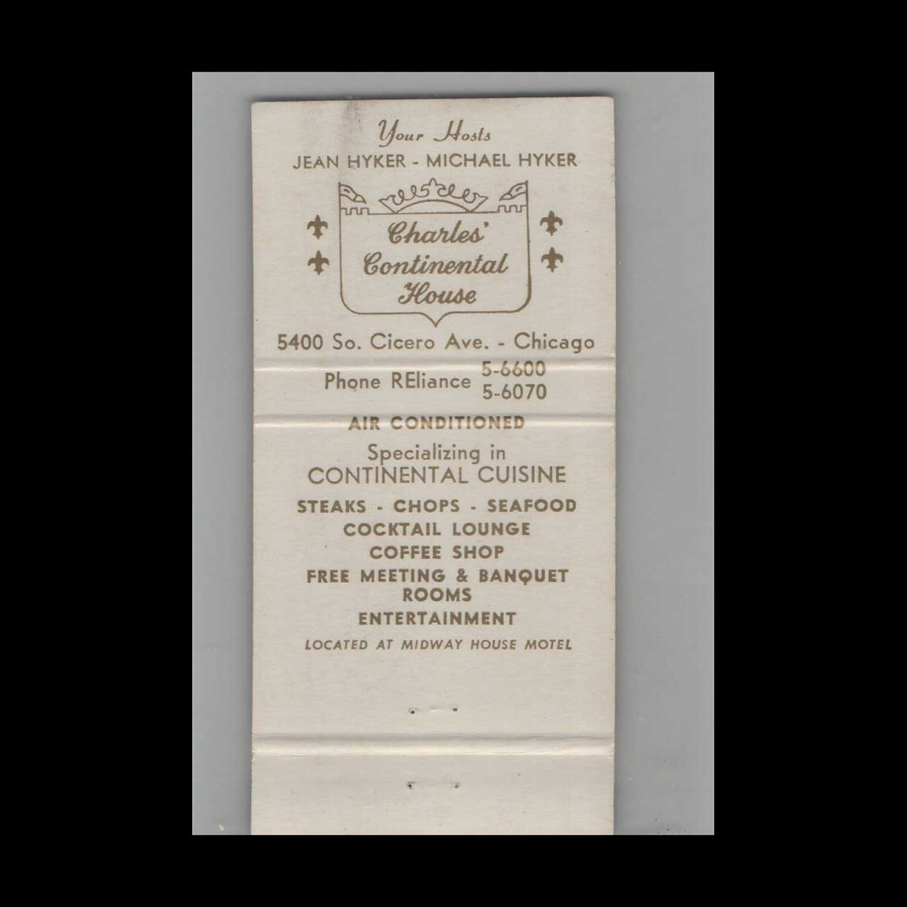 Vintage matchbook cover advertising Full Length Charles Continental House Chicago IL.