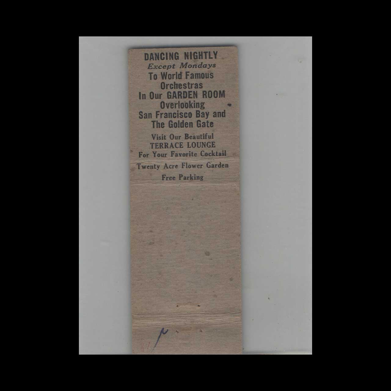 Vintage matchbook cover advertising Full Length Hotel Claremont Berkeley CA #3.
