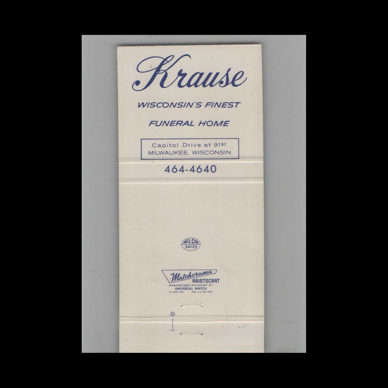 Full Length Matchbook Cover Krause Funeral Home Milwaukee WI