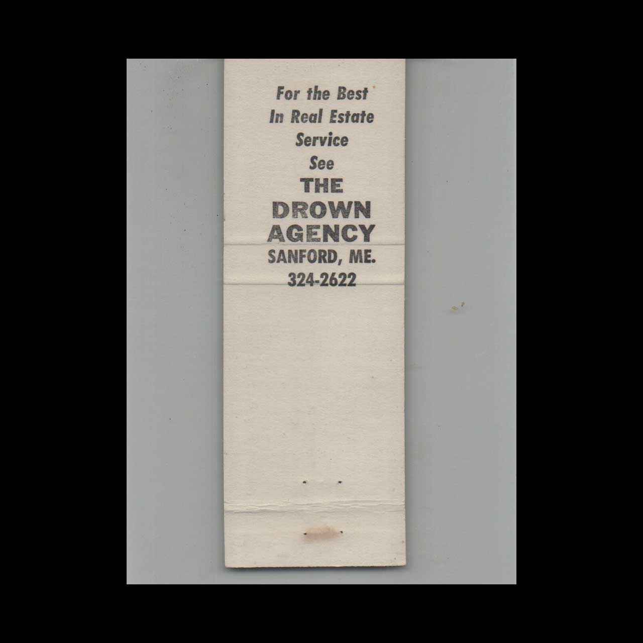 Vintage matchbook cover advertising Full Length Lawrence O. Drown Agency Sanford ME.