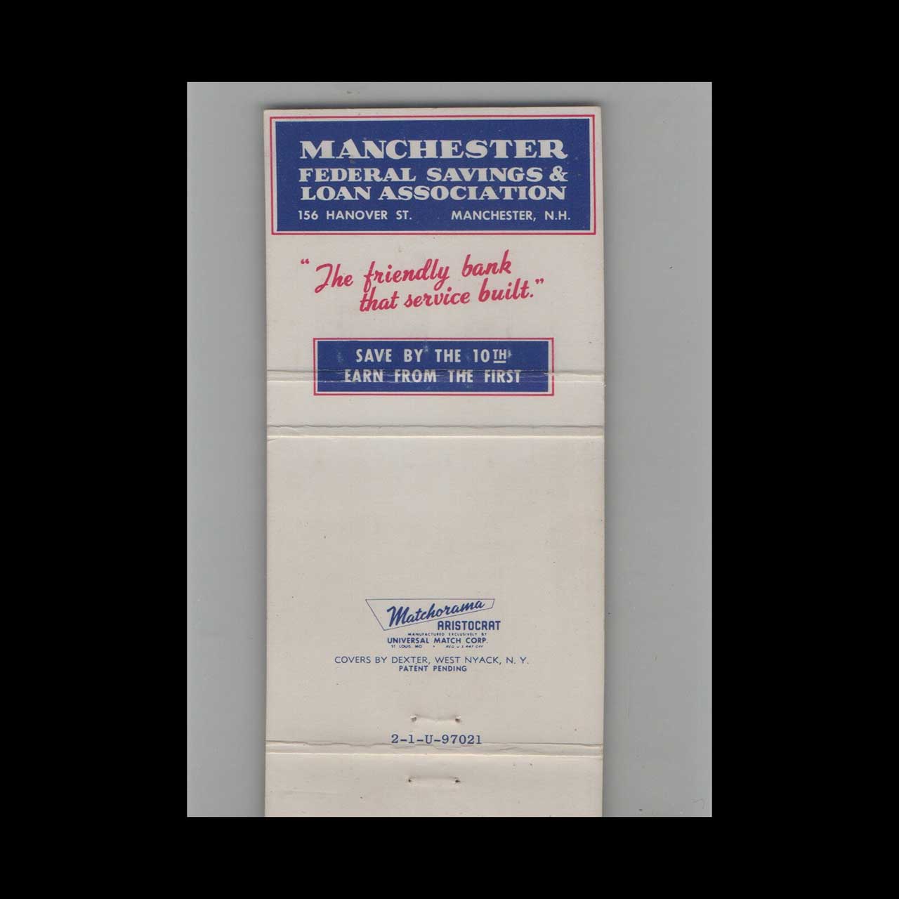 Vintage matchbook cover advertising Full Length Manchester Federal Savings & Loan Manchester NH.