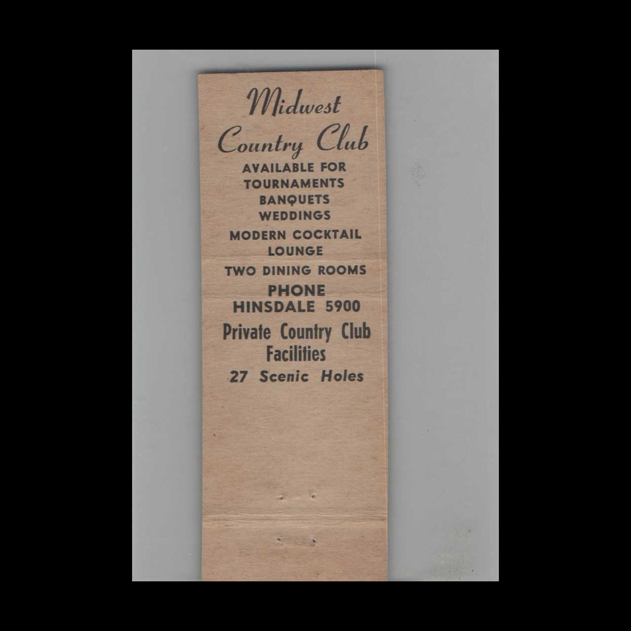 Full Length Matchbook Cover Midwest Country Club Hinsdale IL