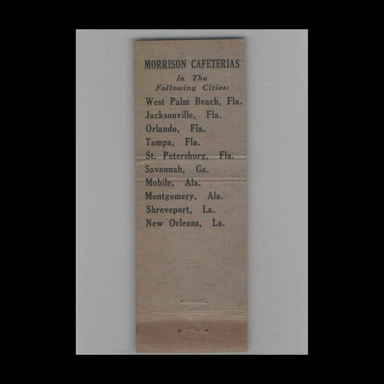 Full Length Matchbook Cover Morrison’s Cafeterias TX