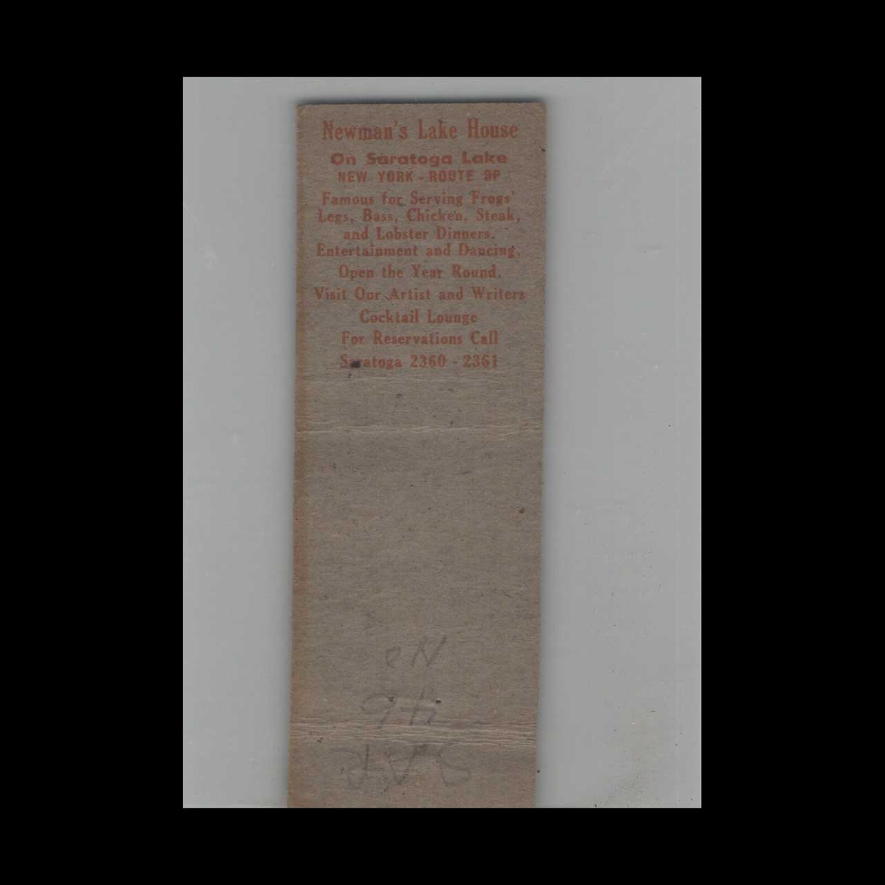 Full Length Matchbook Cover Newman’s Lake House Saratoga Lake NY