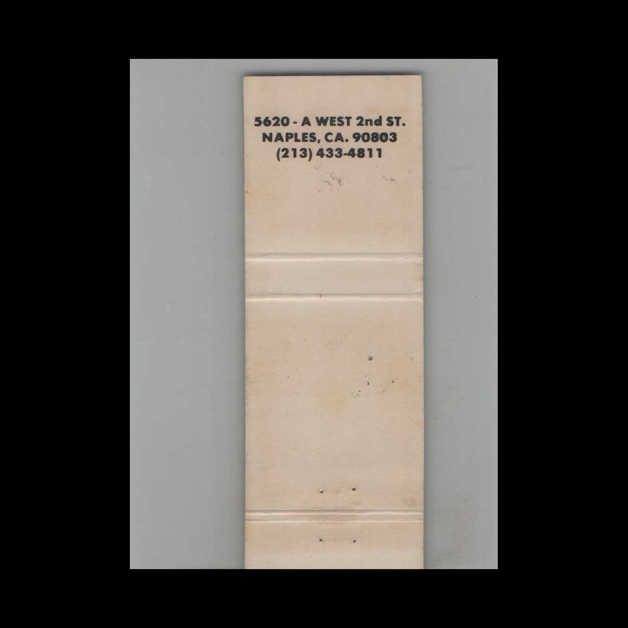 Full Length Matchbook Cover No Name Restaurant Naples CA
