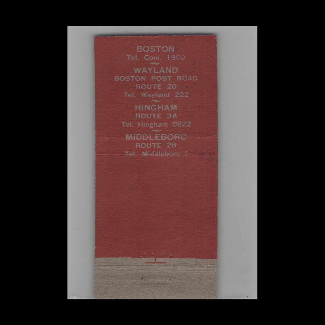 Vintage matchbook cover advertising Full Length Red Coach Grill Hingham MA.