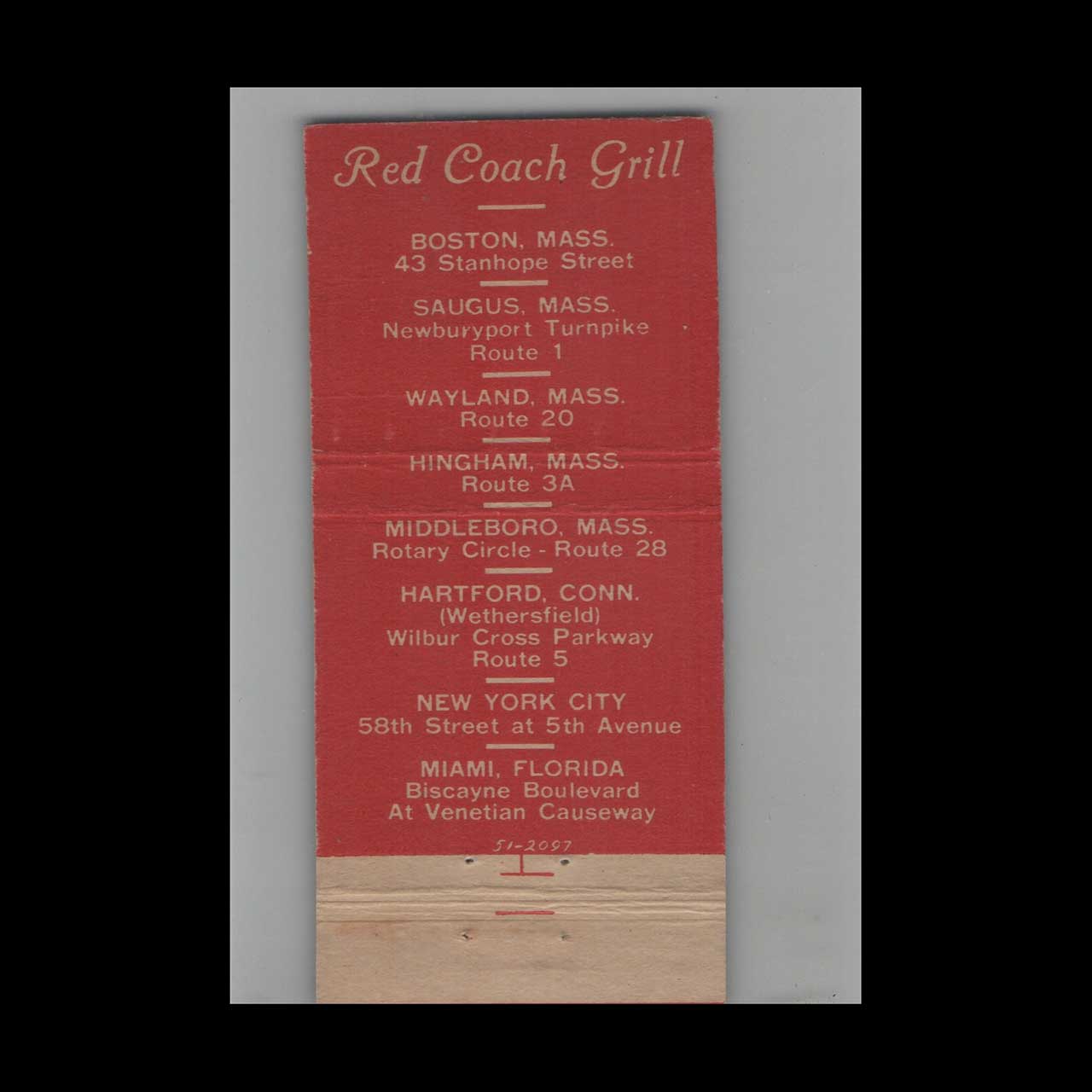 Full Length Matchbook Cover Red Coach Grill Middleboro MA