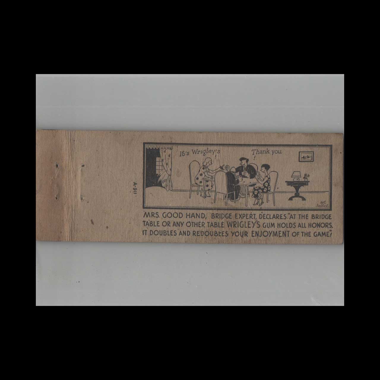 Vintage matchbook cover advertising Full Length Wrigley’s Spearmint Gum Cartoon #2.