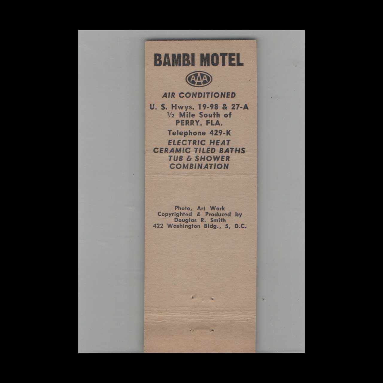 Full Length Photo Matchbook Cover Bambi Motel Perry FL