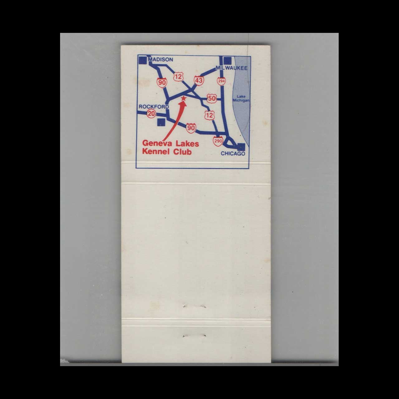 Geneva Lakes Kennel Club Dog Track Matchbook Cover