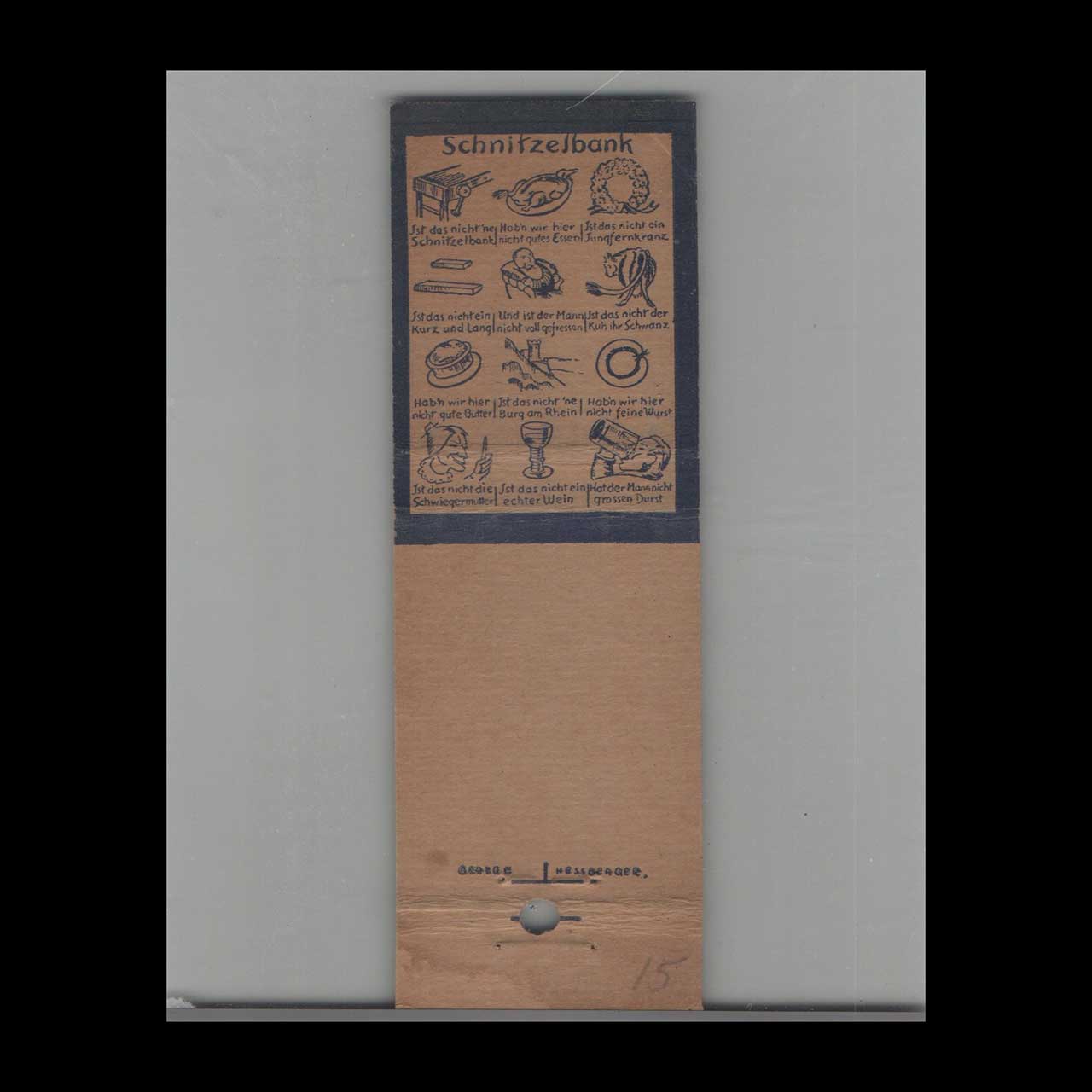 George Hessberger’s Tyrolean Restaurant offered authentic Alpine cuisine in a charming, rustic setting. This vintage matchbook is a classic ephemera relic cherished by Americana collectors.