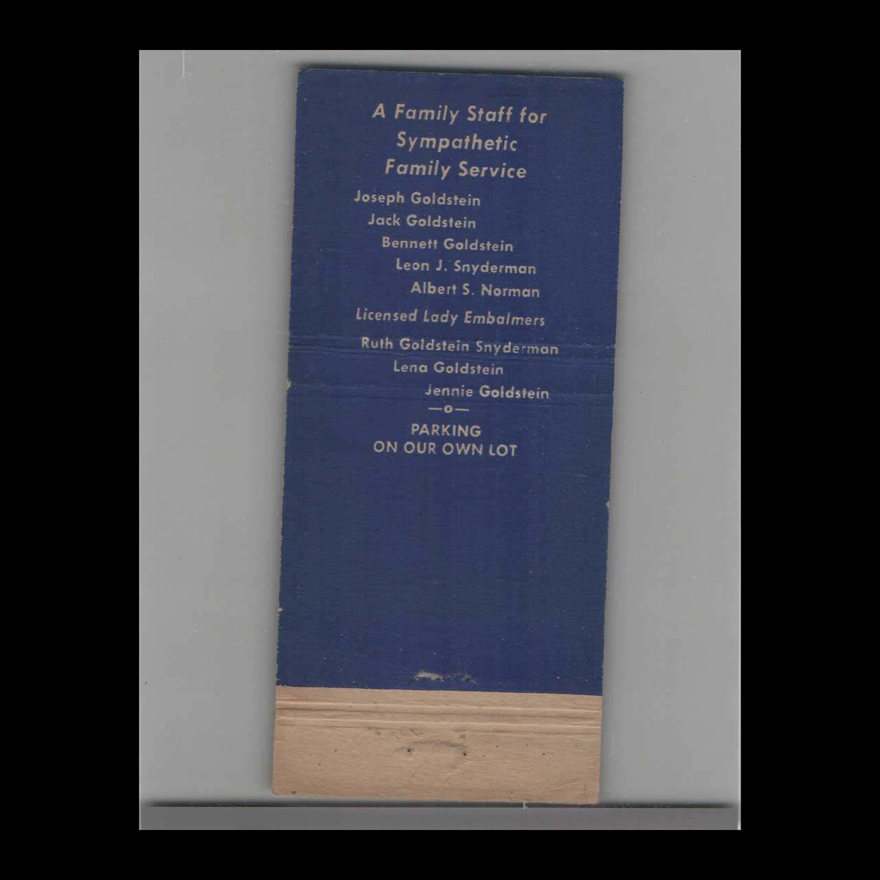 Goldstein’s Memorial Chapel Matchbook Cover Philadelphia