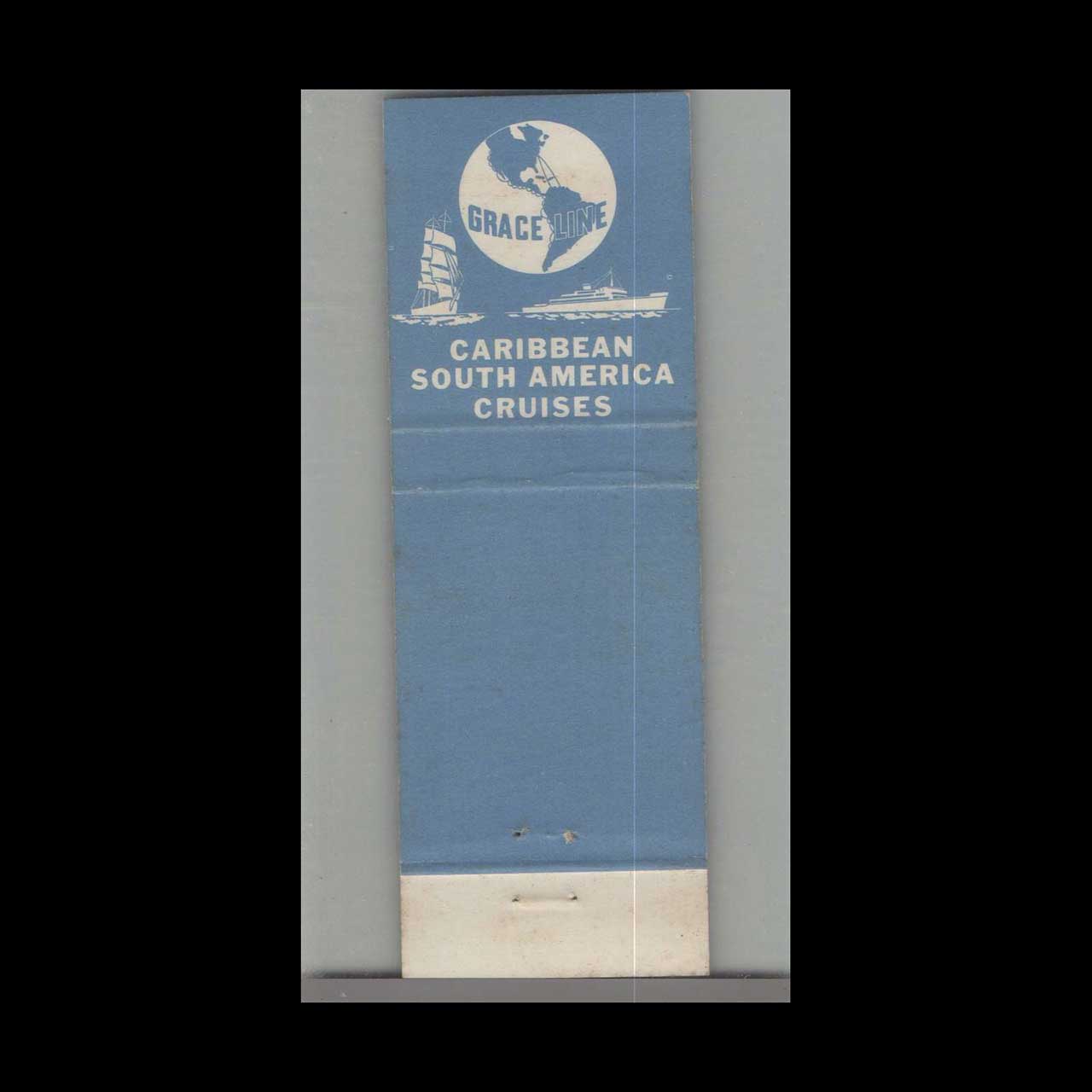 Grace Line offered luxurious Caribbean and South America cruises aboard elegant passenger ships. This vintage matchbook is a classic ephemera relic cherished by Americana collectors.
