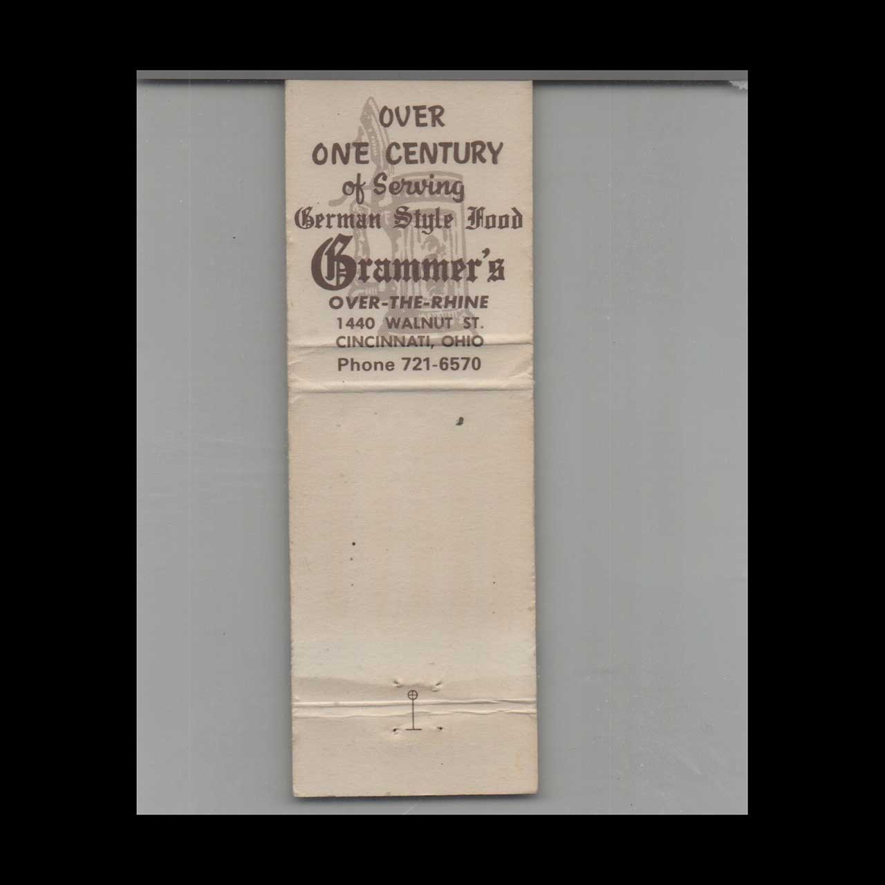 Grammer’s Over The Rhine Cincinnati Matchbook Cover