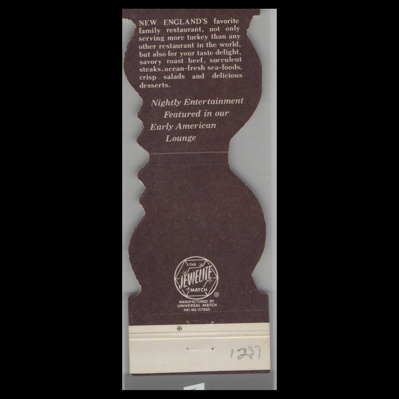 Green Ridge Turkey Farm Restaurant in Nashua, NH, offered hearty farm-to-table dining in a rustic setting. A nostalgic piece of Americana for collectors.