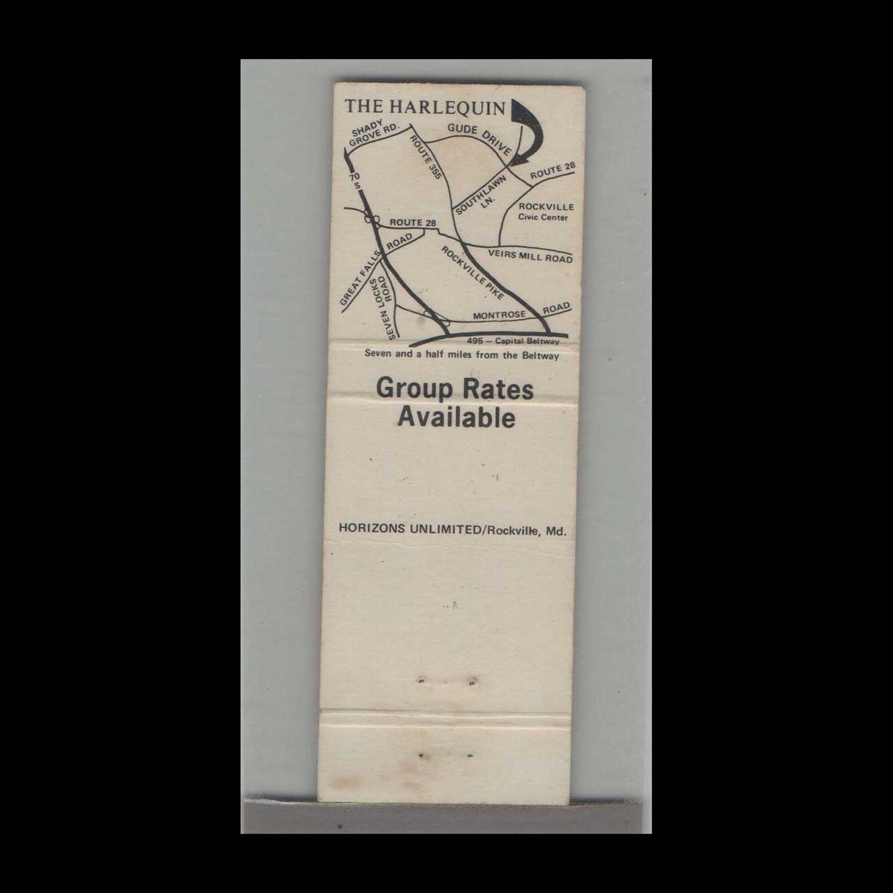 Harlequin Dinner Theatre Matchbook Cover Rockville MD