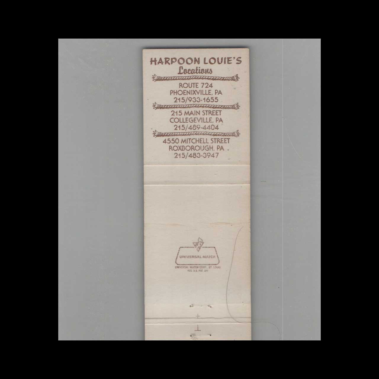 Harpoon Louie’s San Francisco Matchbook Cover