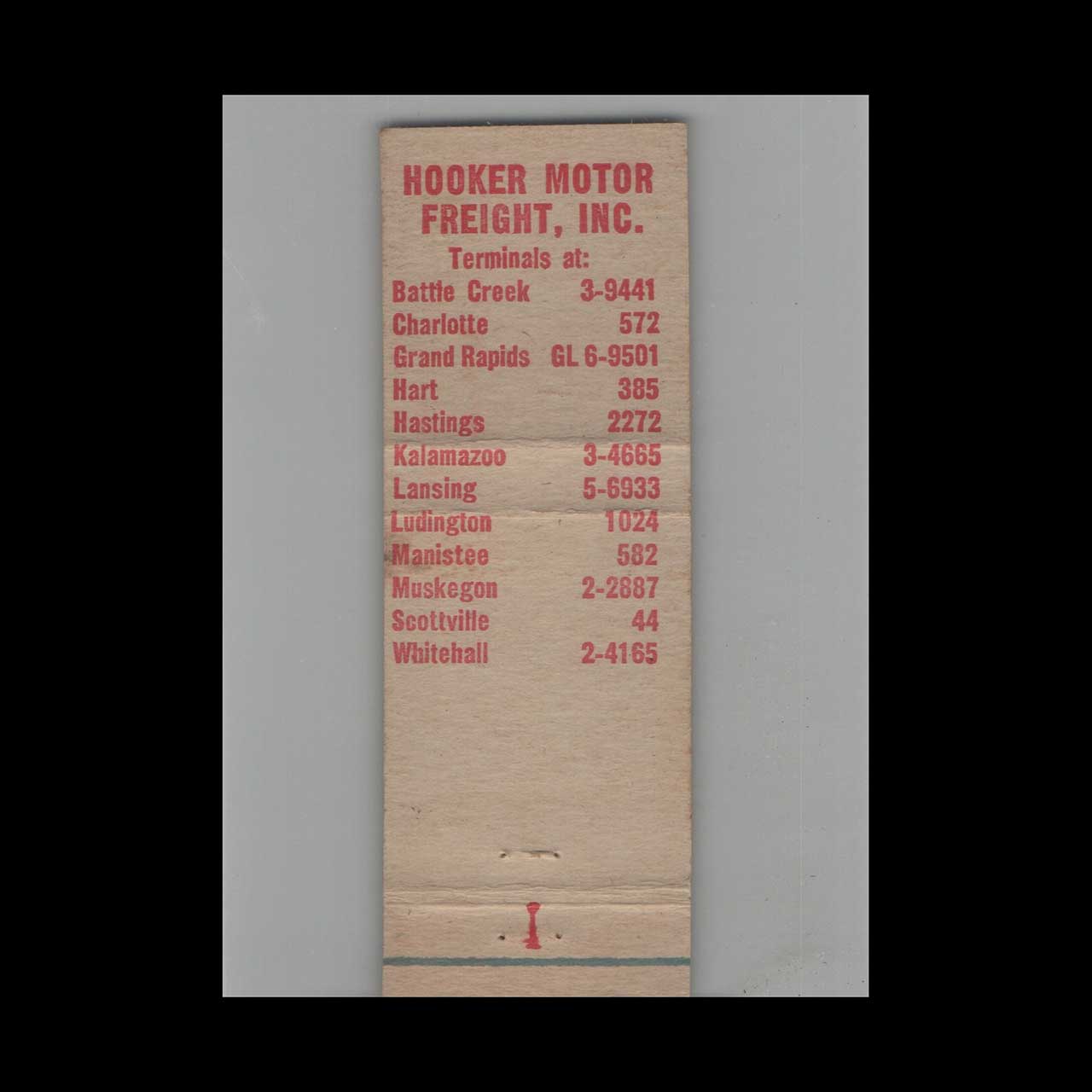 Hooker Motor Freight Inc of Grand Rapids, MI, was a key player in mid-century American trucking and logistics. This vintage matchbook is a classic ephemera relic cherished by Americana collectors.
