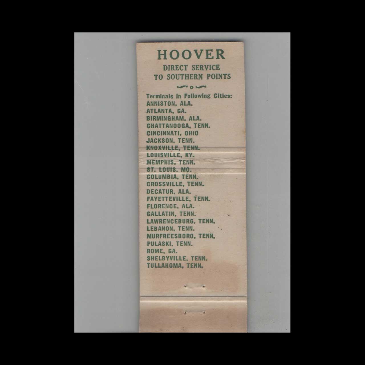 Hoover Motor Express Co Nashville TN Matchbook Cover