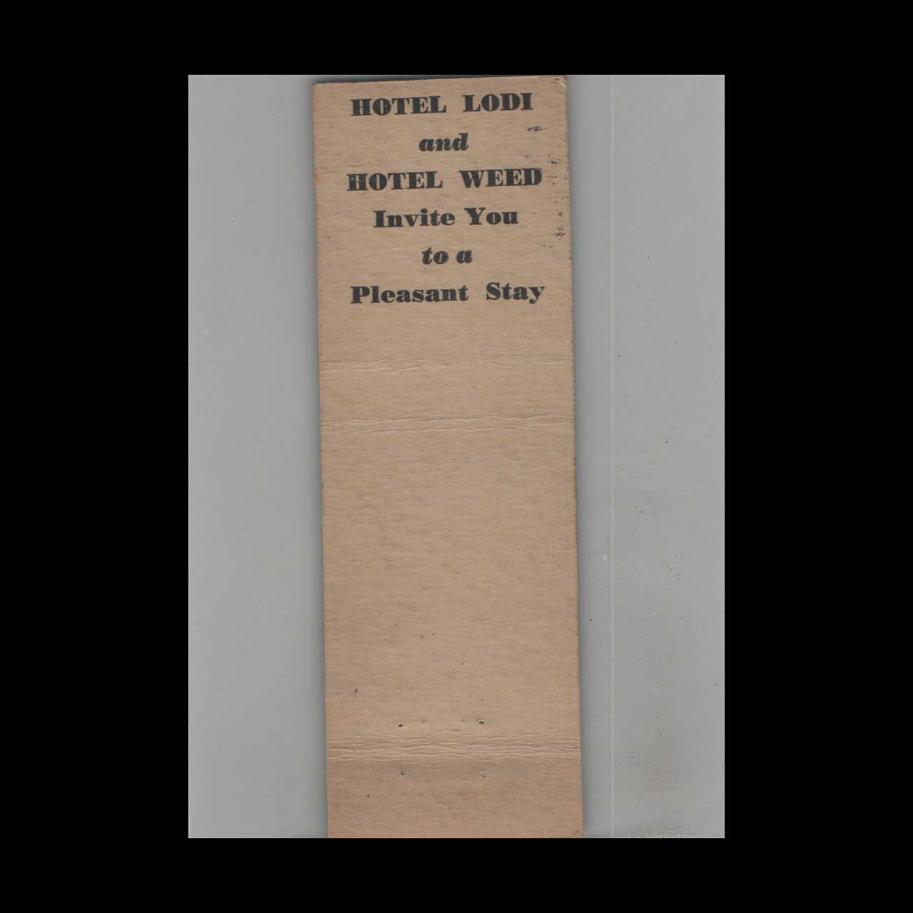Hotel Weed Dunsmuir CA Matchbook Cover