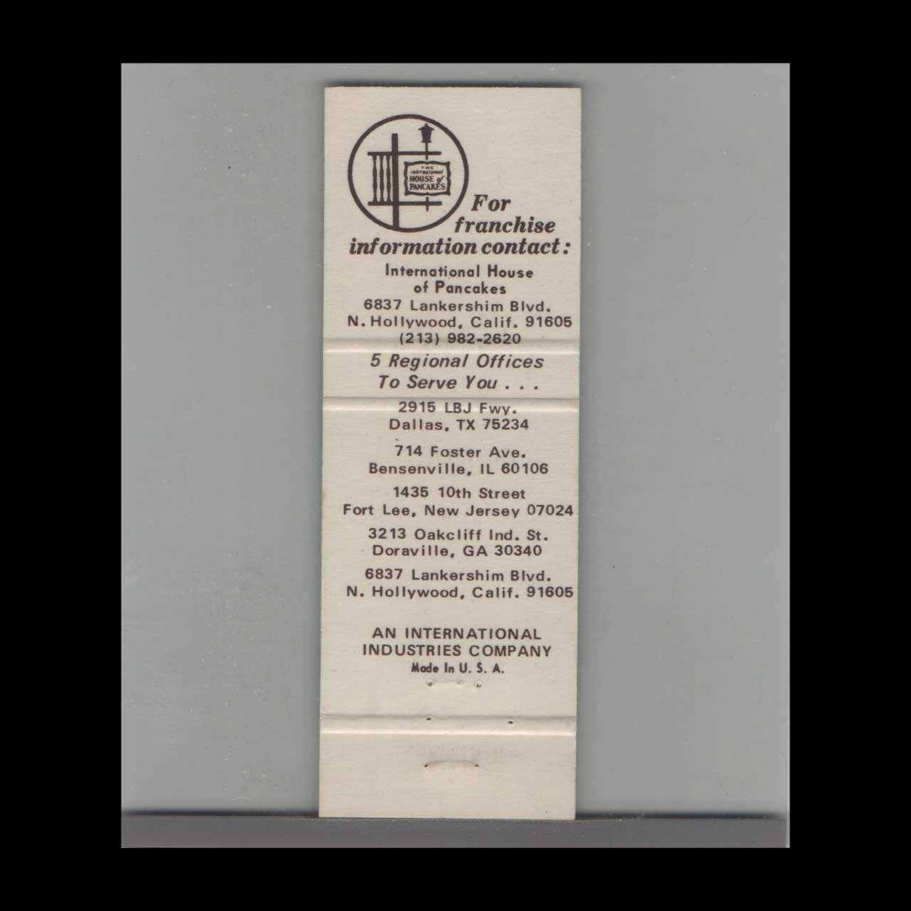 Discover the iconic International House of Pancakes, a beloved American breakfast chain known for its warm hospitality. This vintage matchbook is a classic ephemera relic cherished by collectors of nostalgic Americana.