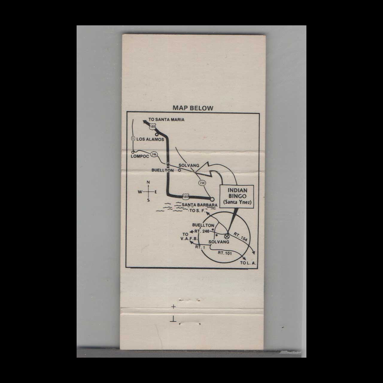 Discover Indian Bingo in Santa Ynez, a charming local gaming spot with rich cultural roots. This vintage matchbook is a classic ephemera relic for Americana collectors.