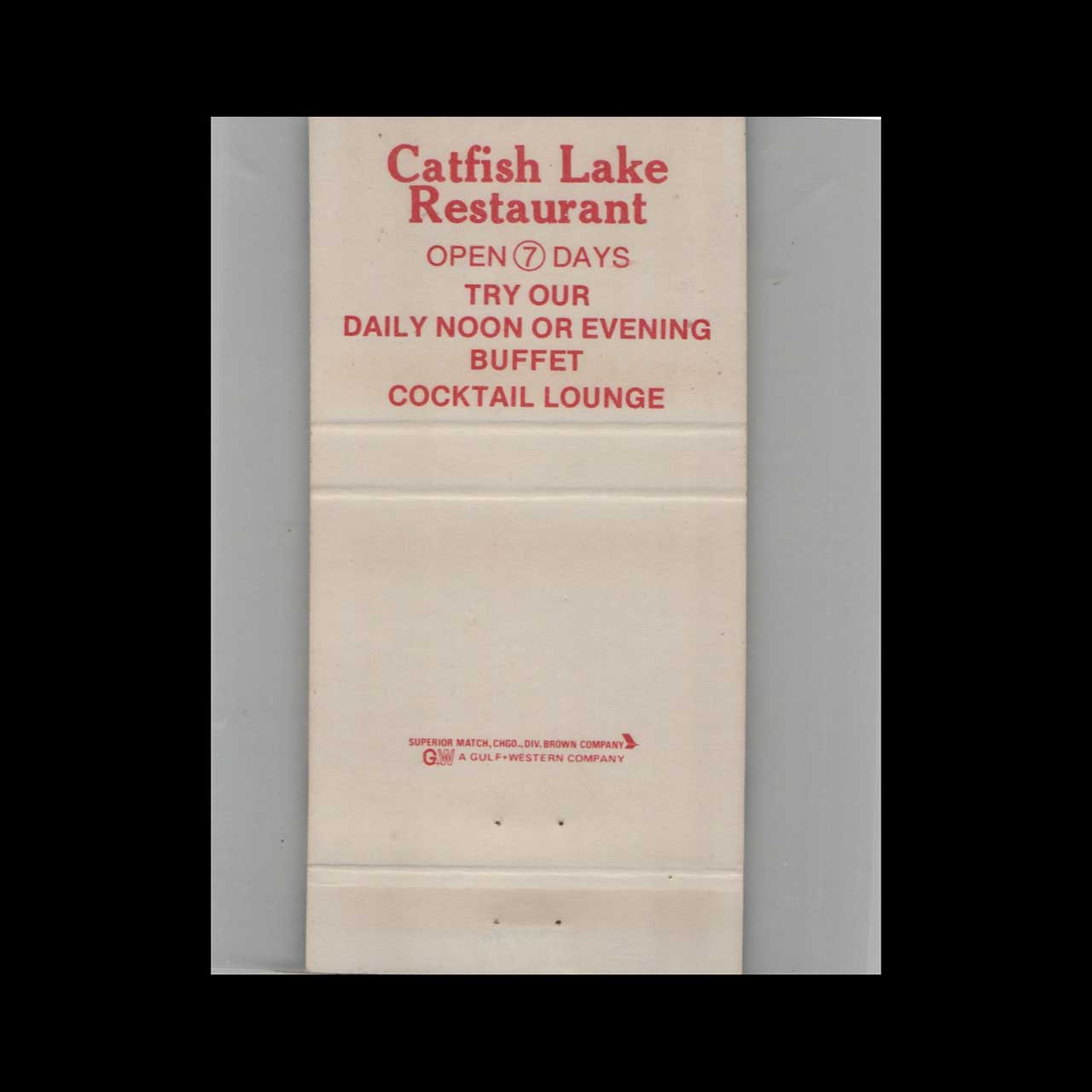 Joe Tessi’s Catfish Lake & Restaurant in Omaha, NE, offered authentic Southern-style seafood in a charming lakeside setting. This vintage matchbook is a classic ephemera relic cherished by Americana collectors.